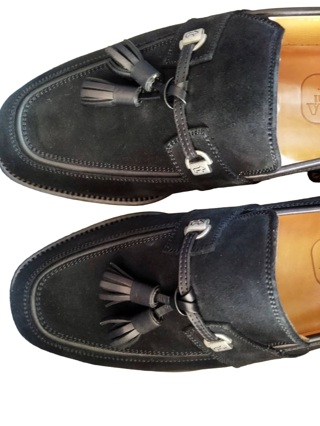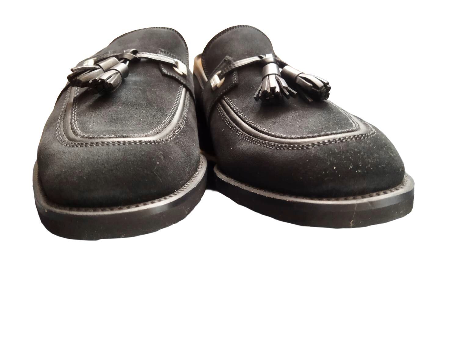 a.testoni【ア・テストーニ】スエード タッセルローファー ブラック BURNISHED CALF メンズ イタリア製 ドレスシューズ 経年保管品 送料無料【TG0008】