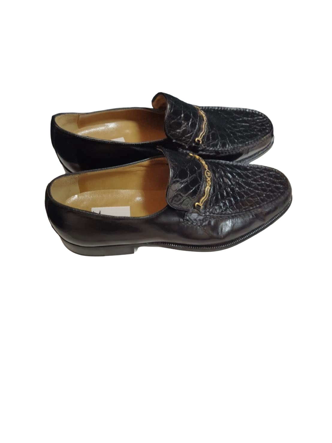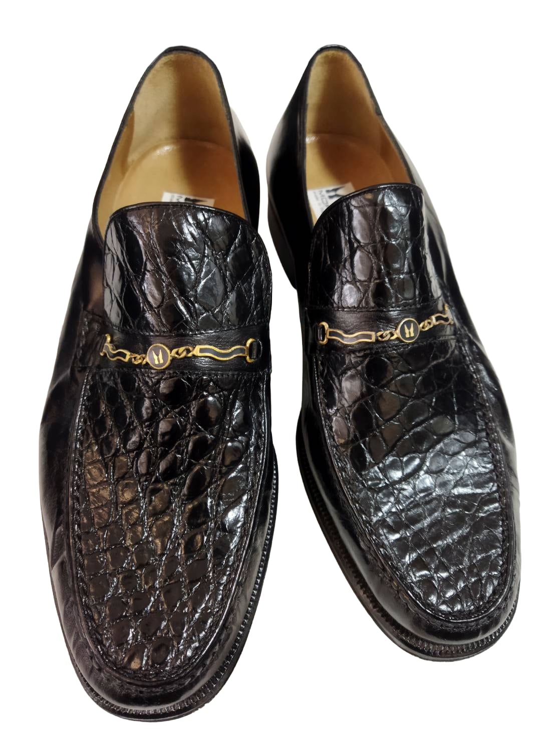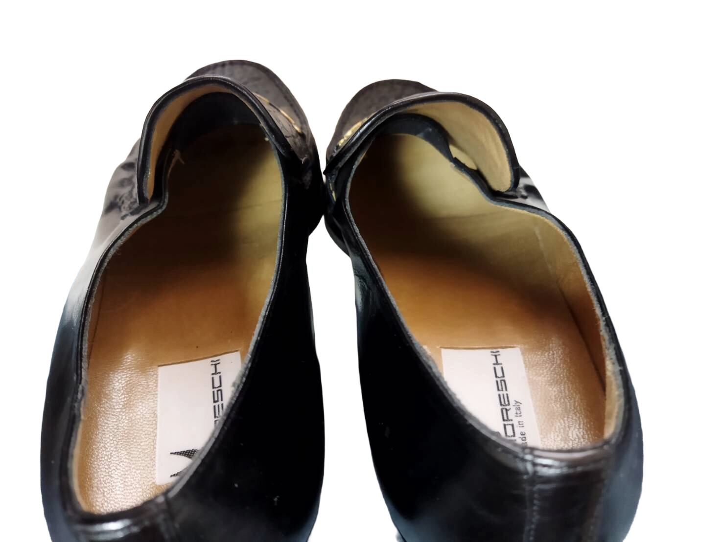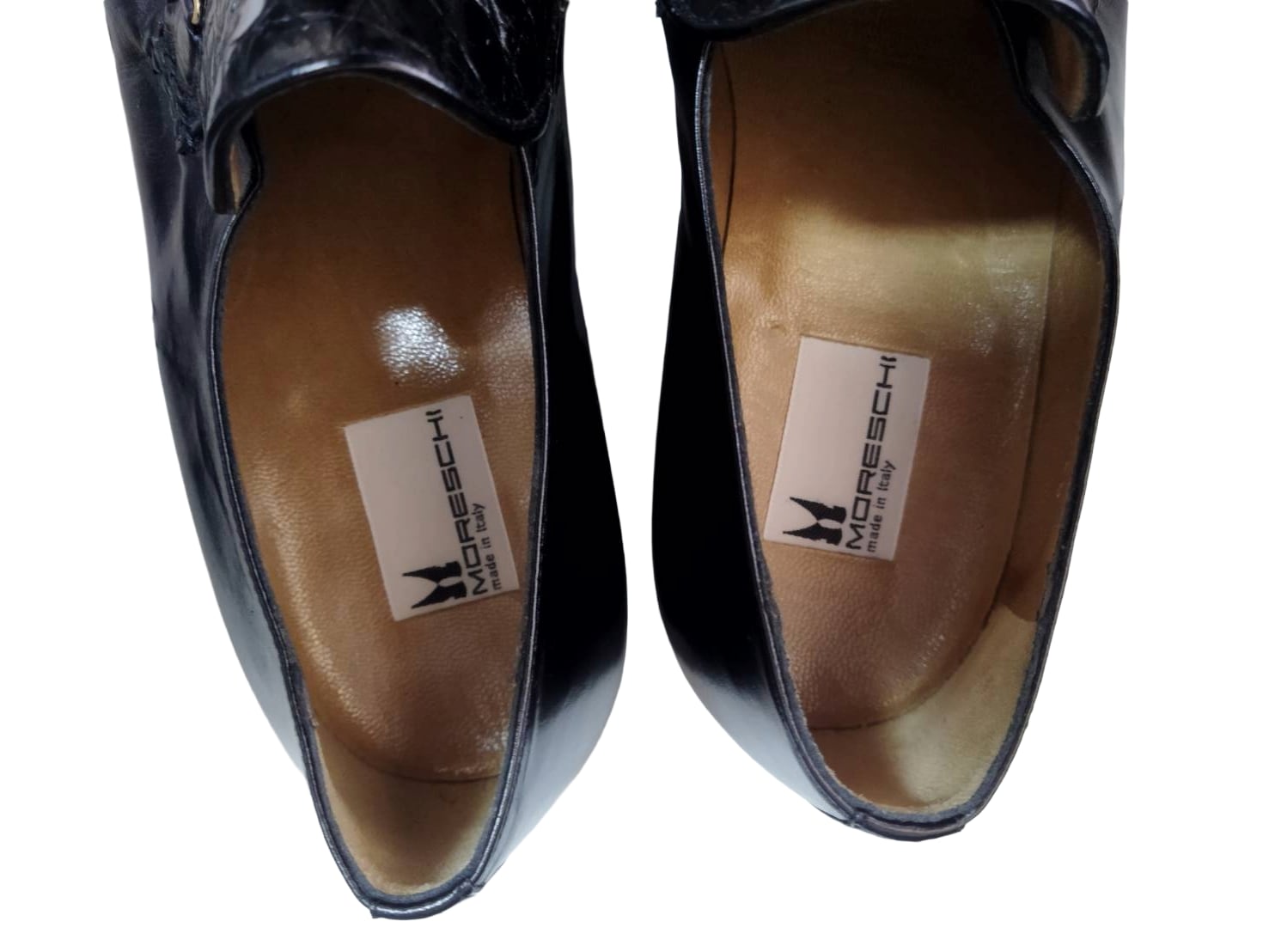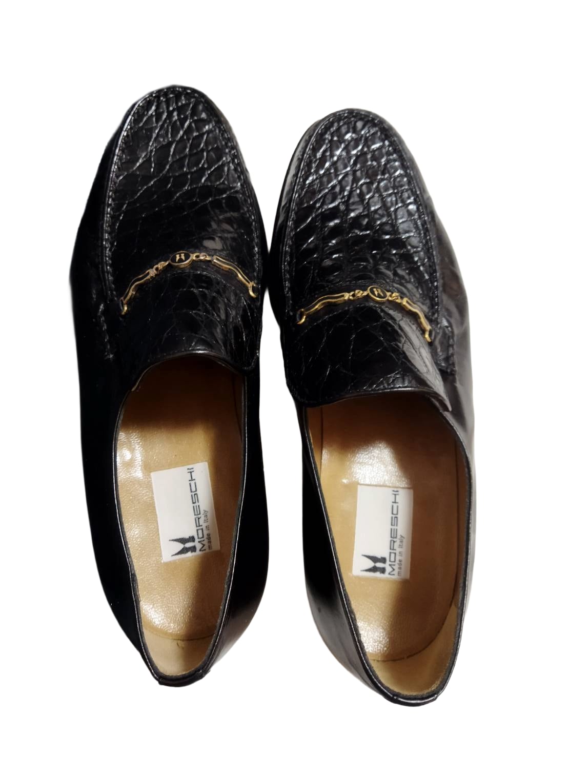 MORESCHI モレスキー ブラック メンズ レザー シューズ 革靴 イタリア製 クロコダイル ビジネス カジュアル 高級 ブランド 未使用 経年保管品 送料無料【TG0020】