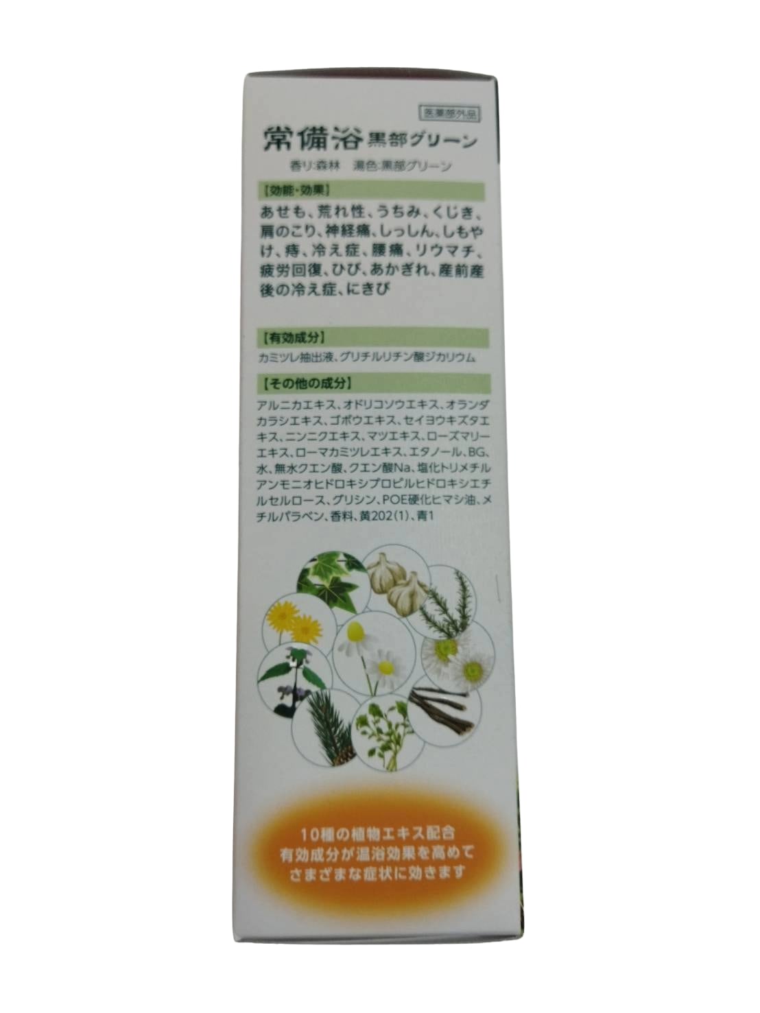 【効能・効果】あせも、荒れ性、うちみ、くじき、肩のこり、神経痛、しっしん、しもやけ、痔、冷え症、腰痛、リウマチ、疲労回復、ひび、あかぎれ、産前産後の冷え症、にきび