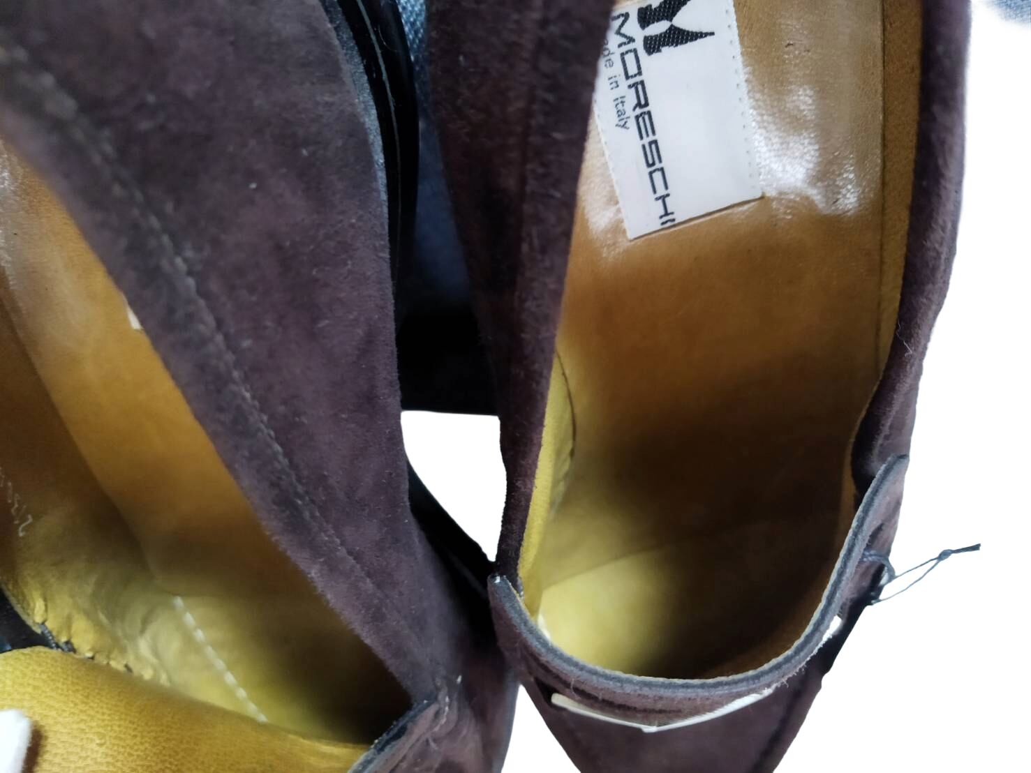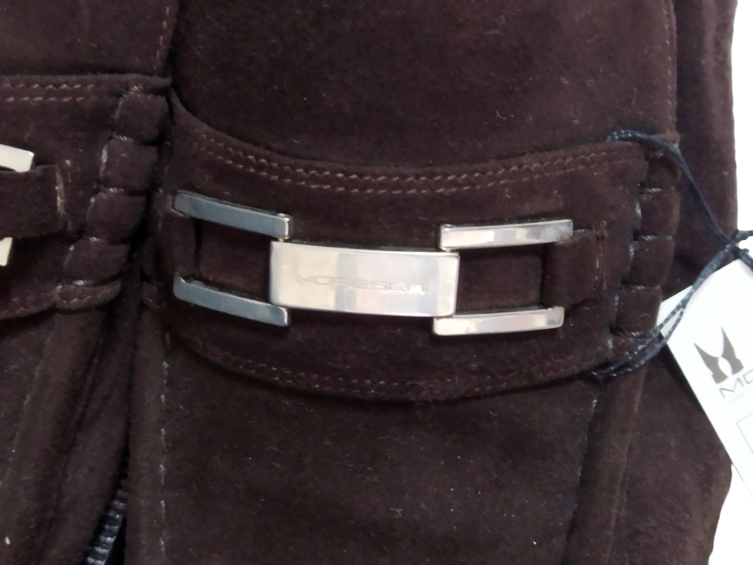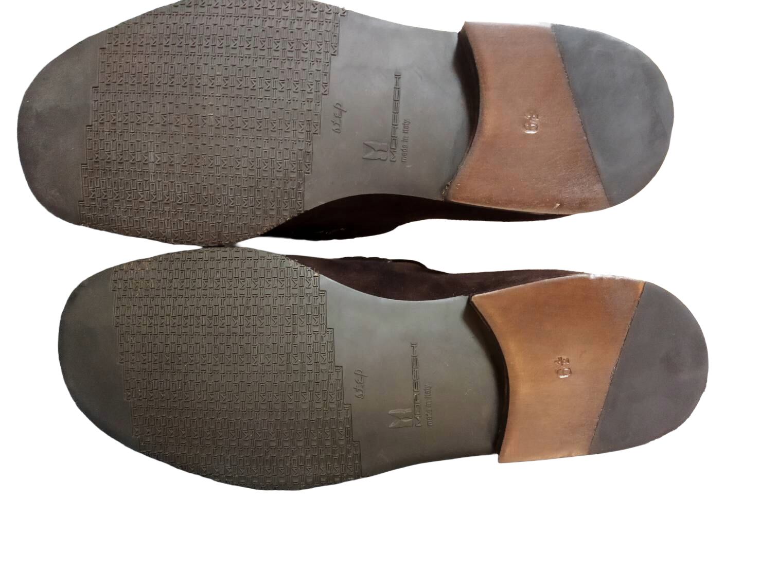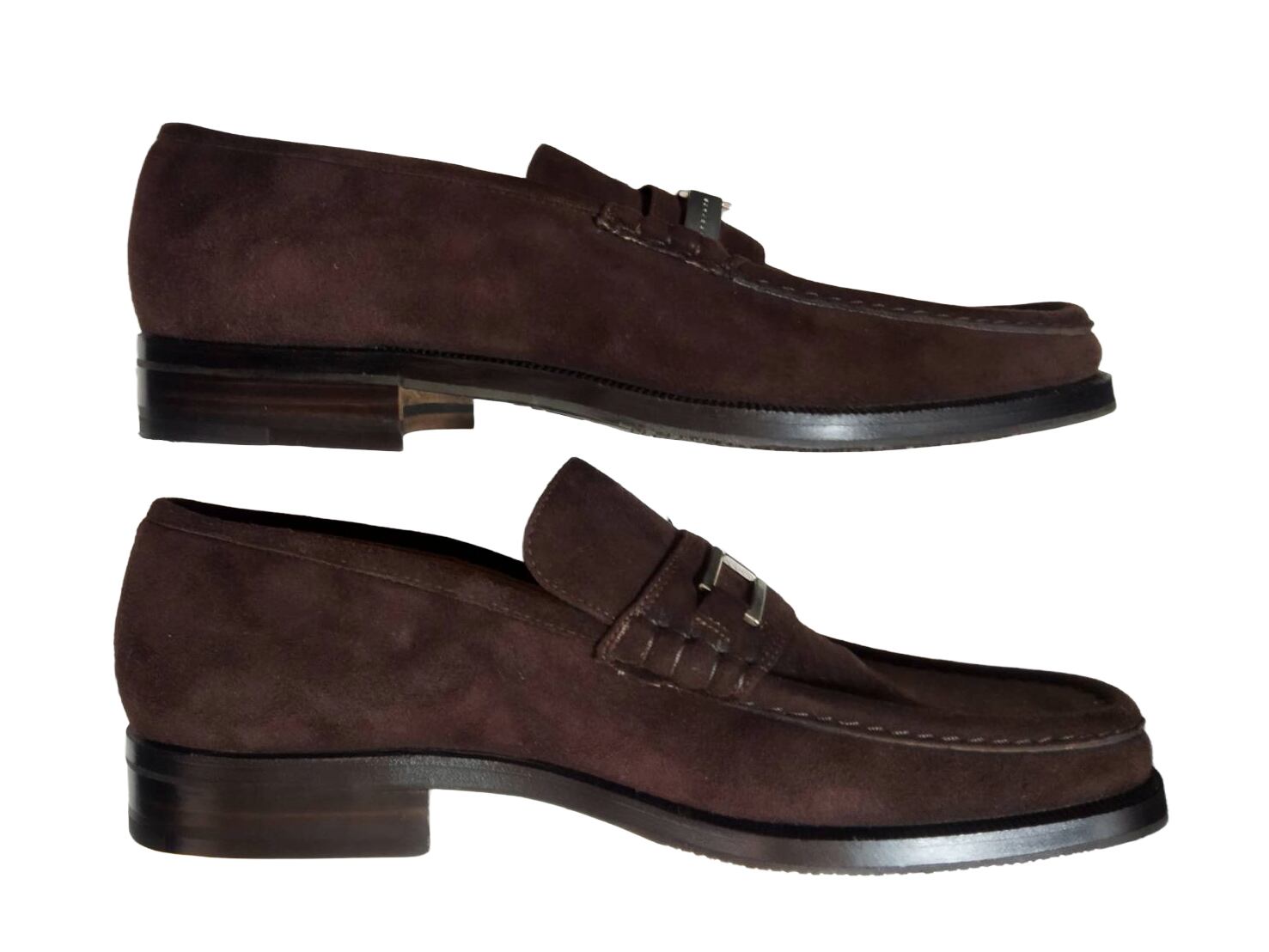 上質なMORESCHI(モレスキー)のブラウン メンズ ビジネスシューズは、スエード素材を使用した洗練されたデザインが魅力です。特にホースビットローファーのスタイルは、上品な印象を与え、ビジネスシーンやフォーマルな場面でも活躍します。