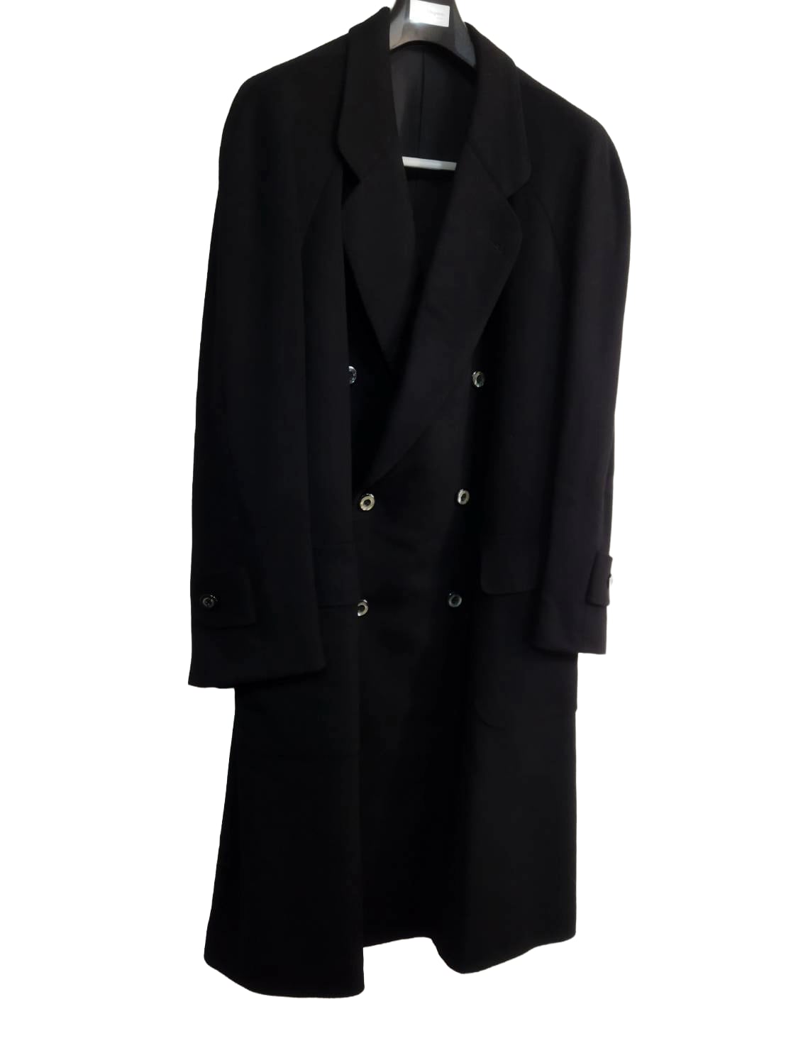 [極上カシミヤ100%] TED LAPIDUS PARIS メンズ ダブル ロングコート ブラック 最高級ウール 名前刺繍有り 贅沢な肌触り 刻印ボタン 比翼仕立て ヴィンテージ 希少品 送料無料【TG0033】
