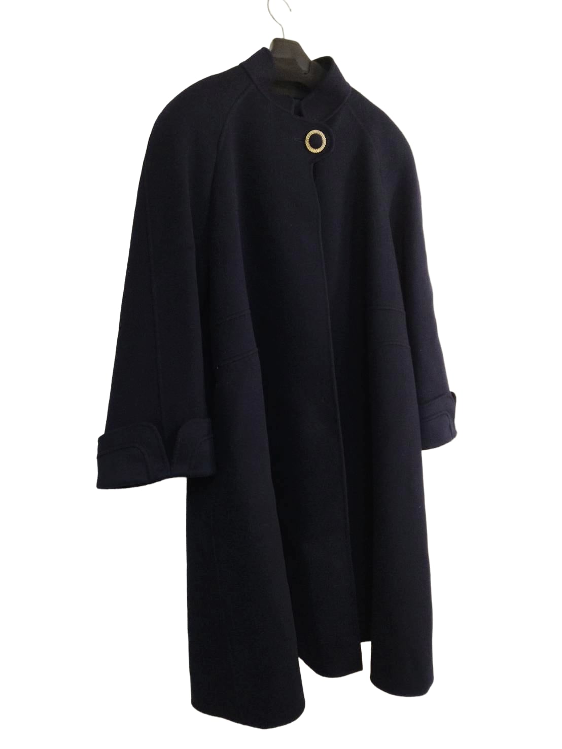 [最高級インペリアルゴールド] 日本製 カシミア100% ポンチョ風 Aライン ロングコート レディース ネイビー 9号 大同毛織生地 ゆったりシルエット キュブラ裏地 極暖・極上の肌触り 送料無料【TG0034】