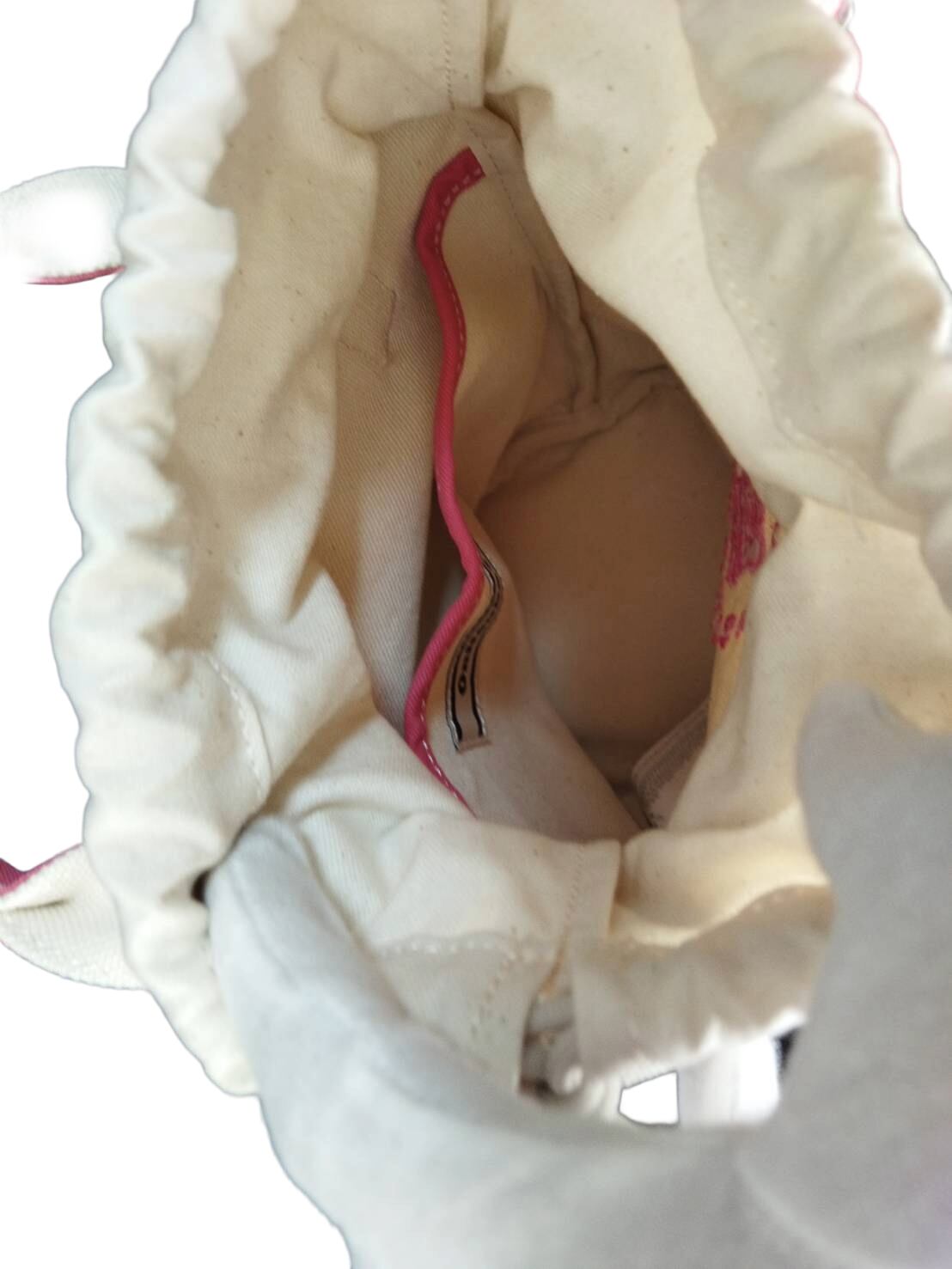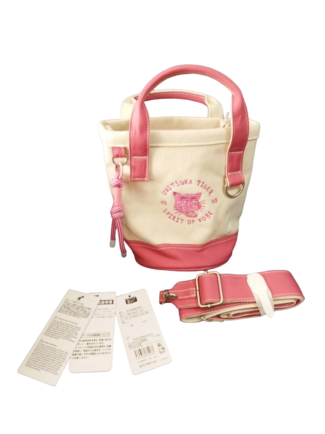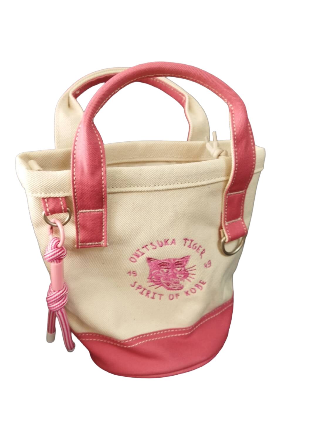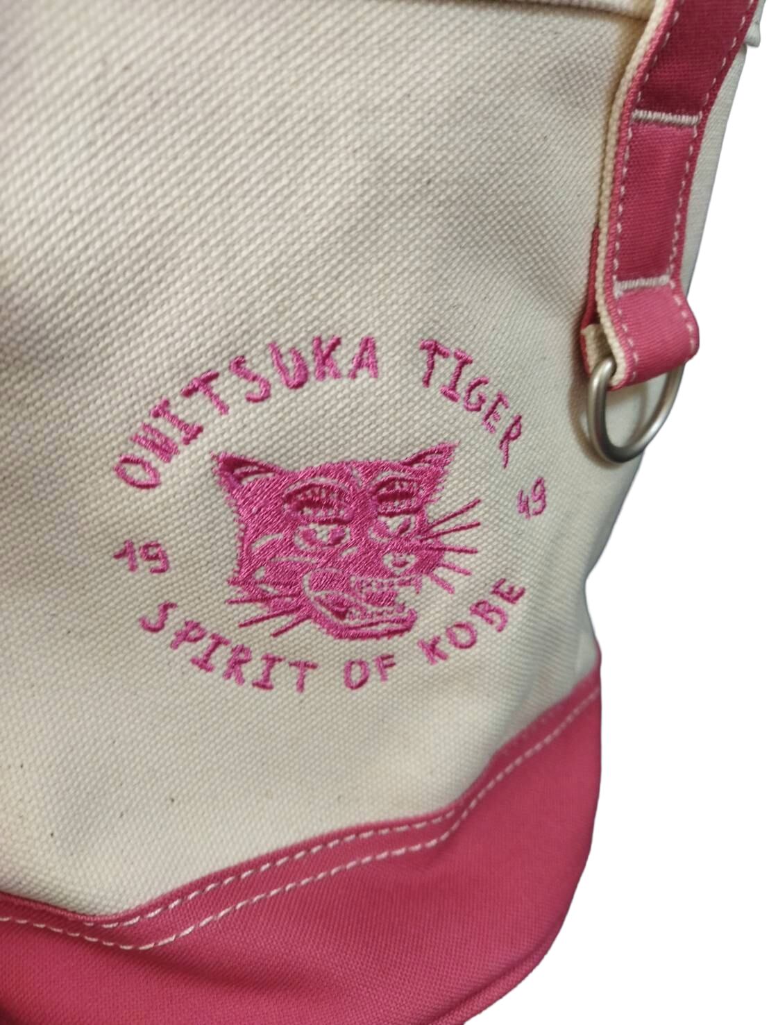 [オニツカタイガー] 公式 2WAY キャンバス ミニ トートバッグ CANVAS TOTE 巾着タイプ 斜めがけ ショルダーバッグ オフホワイト/ピンク 希少モデル 未使用 美品 送料無料【TG0036】