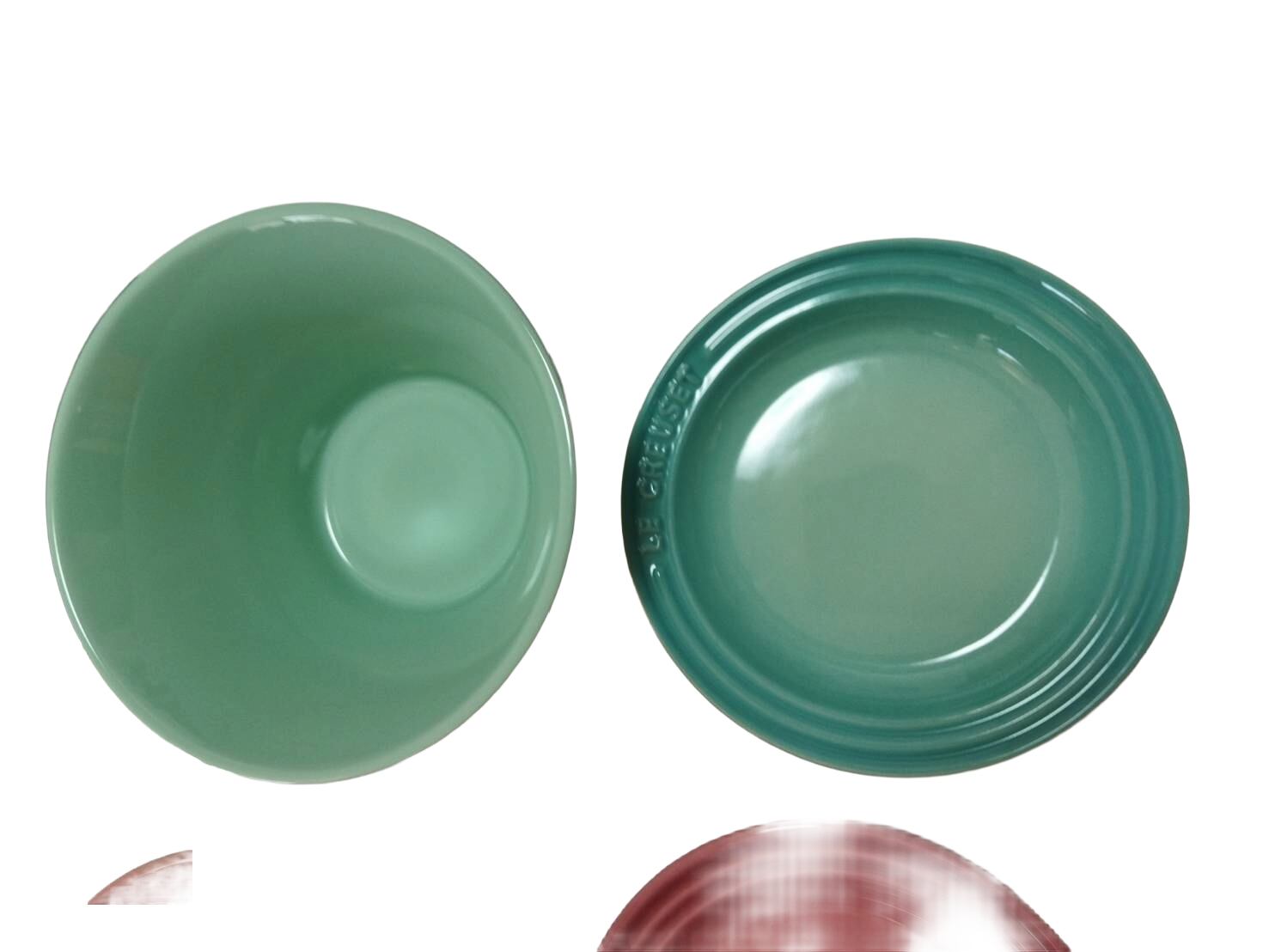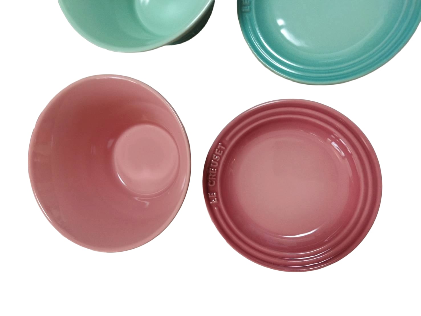 ル・クルーゼ LE CREUSET 食器4点セット Round Plate/Large Bowl ボウル プレート ピンク グリーン 未使用 カラフル 耐熱 食洗機対応 送料無料【TG0039】